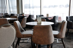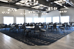 Located in Elora, Ontario, the Grand River Raceway is a race track, gaming and entertainment establishment built in 2002. In 2014 URBANUS was awarded a design contract to consult on a refresh project including three separate areas located in their main building as well as the Lighthouse Event Centre. The concept; Rustic elegance with an equestrian flair. The project had a construction budget of $100,000 which was used strategically throughout each space in order to create the most impact. New statement lighting, flooring, paint and some key furniture pieces were added but the feature of this project was the stunning custom large format carpet tiles designed by URBANUS and produced by Milliken. The carpet featured a tartan pattern with a combination of blues, consistent with the GRR corporate colour pallet, overlaid with a tree silhouette. To reduce costs existing event seating was reupholstered and powder coated black.